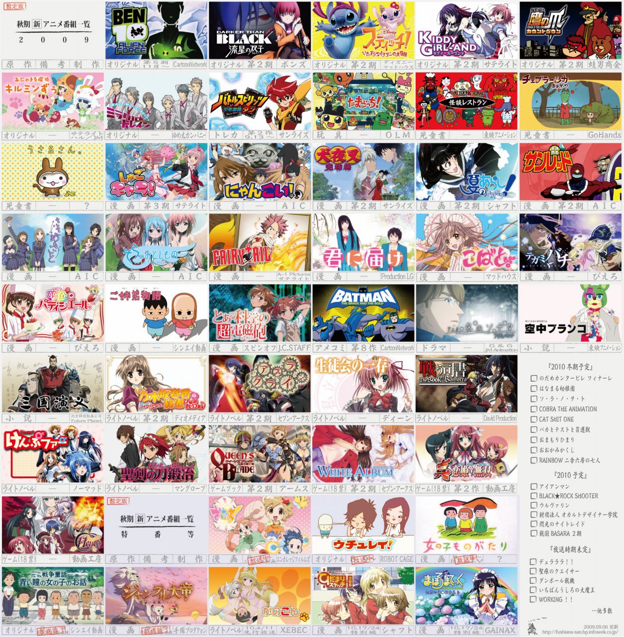 2009年秋開始予定のアニメ一覧